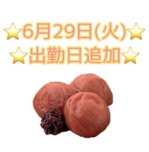 元々あった予定が無くなったので、6月29日(火) 12:00〜23:00まで出勤します☺️7月は今までと比べて全然入られへんから今のうちに来ててね😆✨いつも来てくれる方も、2回目の方も初めましての方もお待ちしております☺️あ、画像は最近梅干しにハマってるんで載せただけです。それ以外の意味は特にありません。😌笑----------【↓お店から↓】----------♚♛夏の特別大感謝祭♛♚(1日.11日.21日.31日)7月/8月限定サマーイベント1の付く日は全部開催!!◆内容:超破格!3,000円OFF※事前ご予約適応可※全てのお客様が対象です!※ファーストクラスコース限定